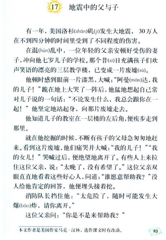 你們讀過的語文課本里有《地震中的父與子》這篇文章嗎?_風聞