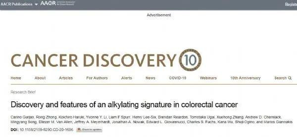 Carino Gurjao, Rong Zhong, Koichiro Haruki,et al. Discovery and features of an alkylating signature in colorectal cancer, Cancer Discovery (2021). DOI: 10.1158/2159-8290.CD-20-1656
