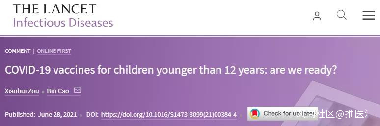 在《柳葉刀-感染病學》同期刊發的評論中,中日友好醫院曹彬教授及團隊指出,“羣體免疫是結束新冠大流行的先決條件……由於兒童中的大多數新冠病例都是輕度和無症狀的,我們不能排除未接種疫苗的兒童成為病毒‘庇護所’的可能性。”