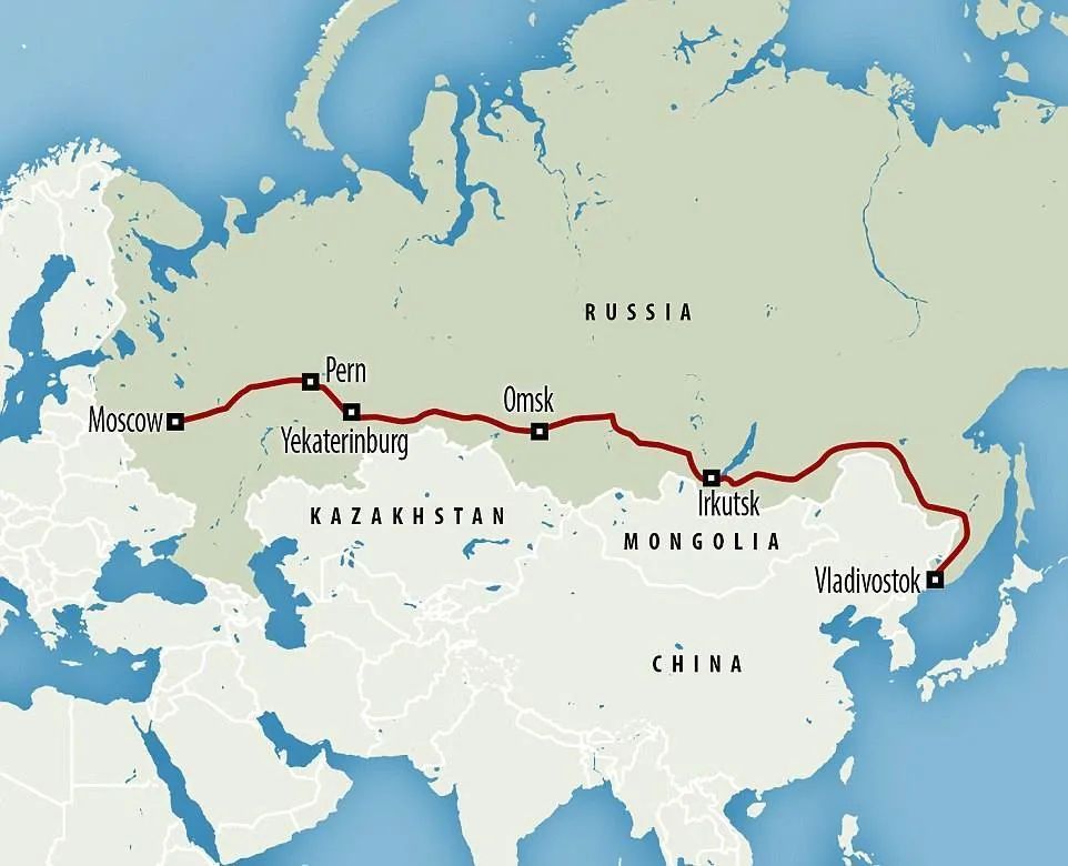 這條鐵路總長9288公里,縱貫歐亞,起點為莫斯科,途徑平原森林、烏拉爾山脈、西伯利亞凍土,最後抵達海參崴,整整跨越8個時區,16條大河流,被譽為俄羅的“脊柱”。