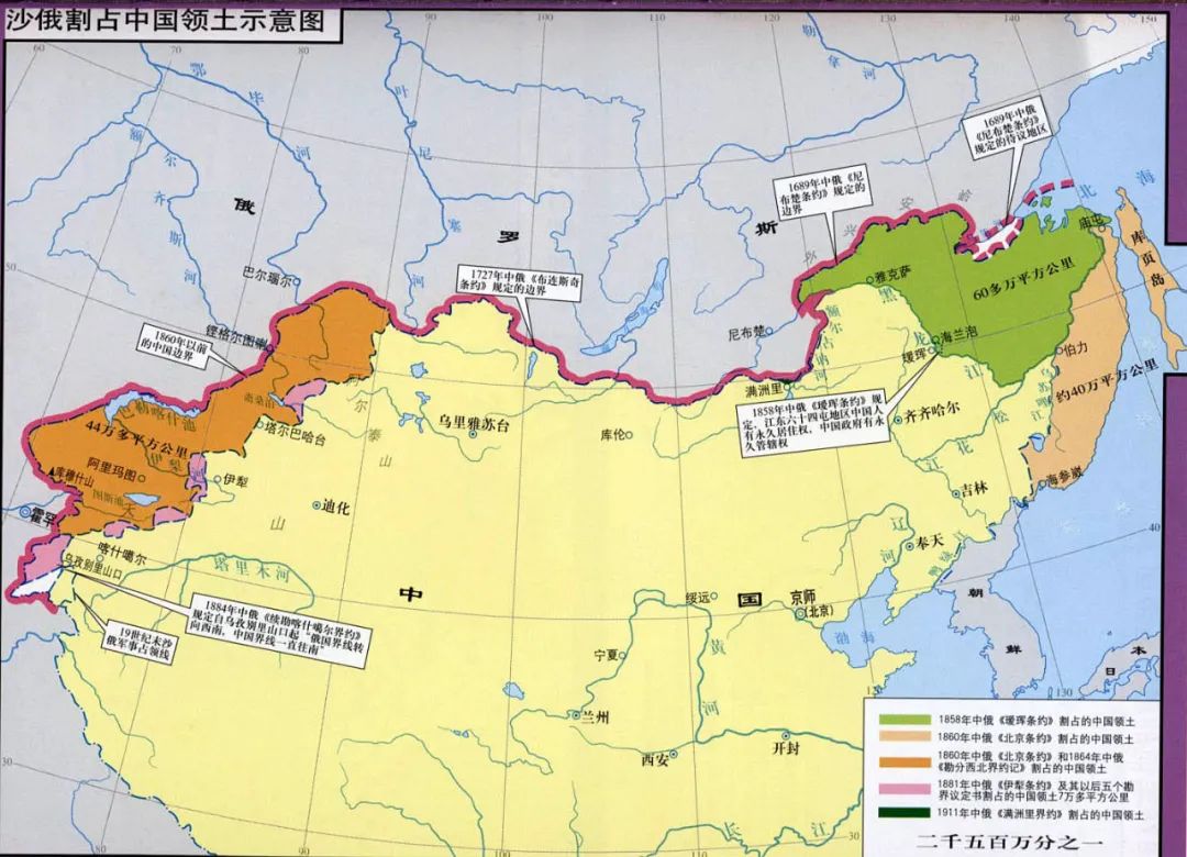 加上1864年的《中俄勘分西北界約記》和1881年《中俄伊犁條約》,整個19世紀,毛熊國是搶中國土地最多的列強,總共大約167萬平方公里土地被擼走了。友誼!!!