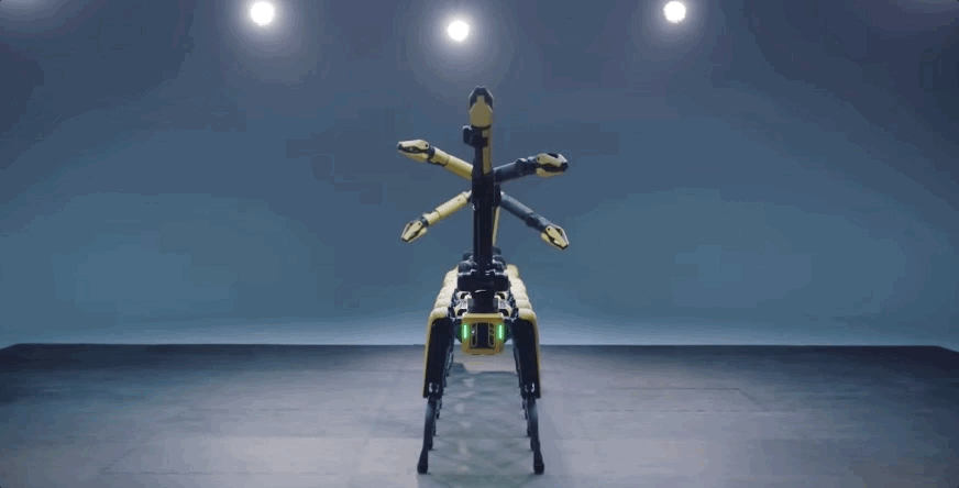 另一段視頻中,Spot機械狗準備了一場「千手觀音」舞蹈秀。