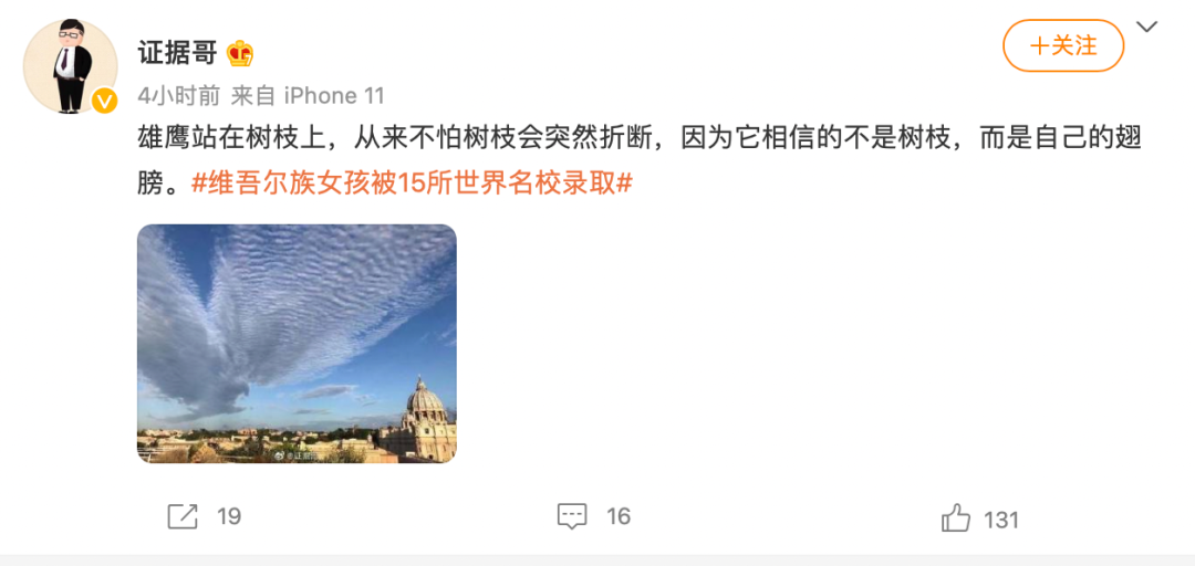 最後,用一名網友的話來結束今天的內容:雄鷹站在樹枝上,從來不怕樹枝會突然折斷,因為它相信的不是樹枝,而是自己的翅膀。