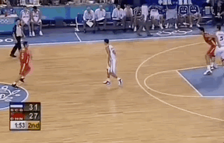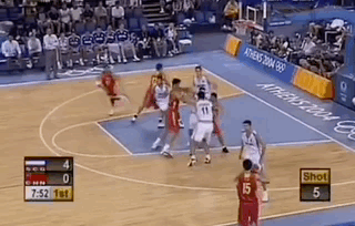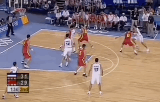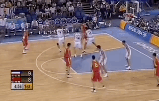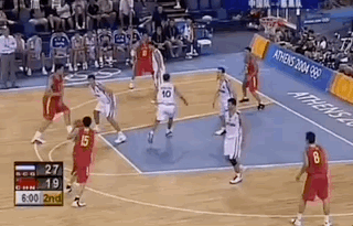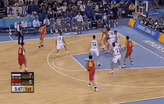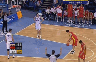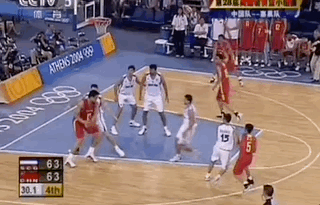 開場兩分鐘過去,中國隊的得分是0,姚明依然享受全奧運會最高規格的包夾防守,中國隊依靠李楠的三分和杜鋒的突破才勉強打破僵局咬住了比分。