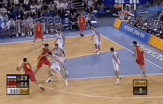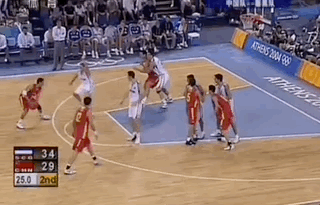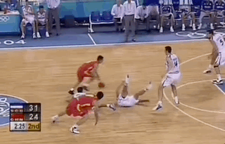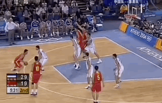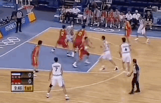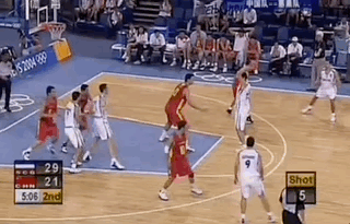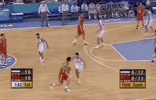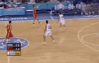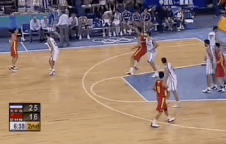 塞黑一開場就對姚明嚴防死守,2-3人的夾擊是標配,但2004年的姚明早就習慣了這種待遇。除了“接球就快速出手”這個方法外,姚明也很清楚如何遠離夾擊,翻身走底線、轉身後仰,讓前來夾擊的對手無法靠近(頗有科比破包夾的風格)。雖然塞黑的鋒線和內線高度都不差,但在姚明面前,還是顯得不夠看。這也是中國男籃唯一的絕對強點。