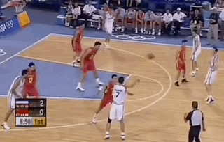 整場比賽就進入了“塞黑利用突分和快攻取得領先、中國隊用姚明和陣地戰絞肉不斷追分”的泥沼戰模式,雙方的命中率都沒超過40%,塞黑隊第四節只得到12分,如果除掉最後那記絕望的壓哨三分,那他們在末節9分57秒的時間裏,只拿到了9分。