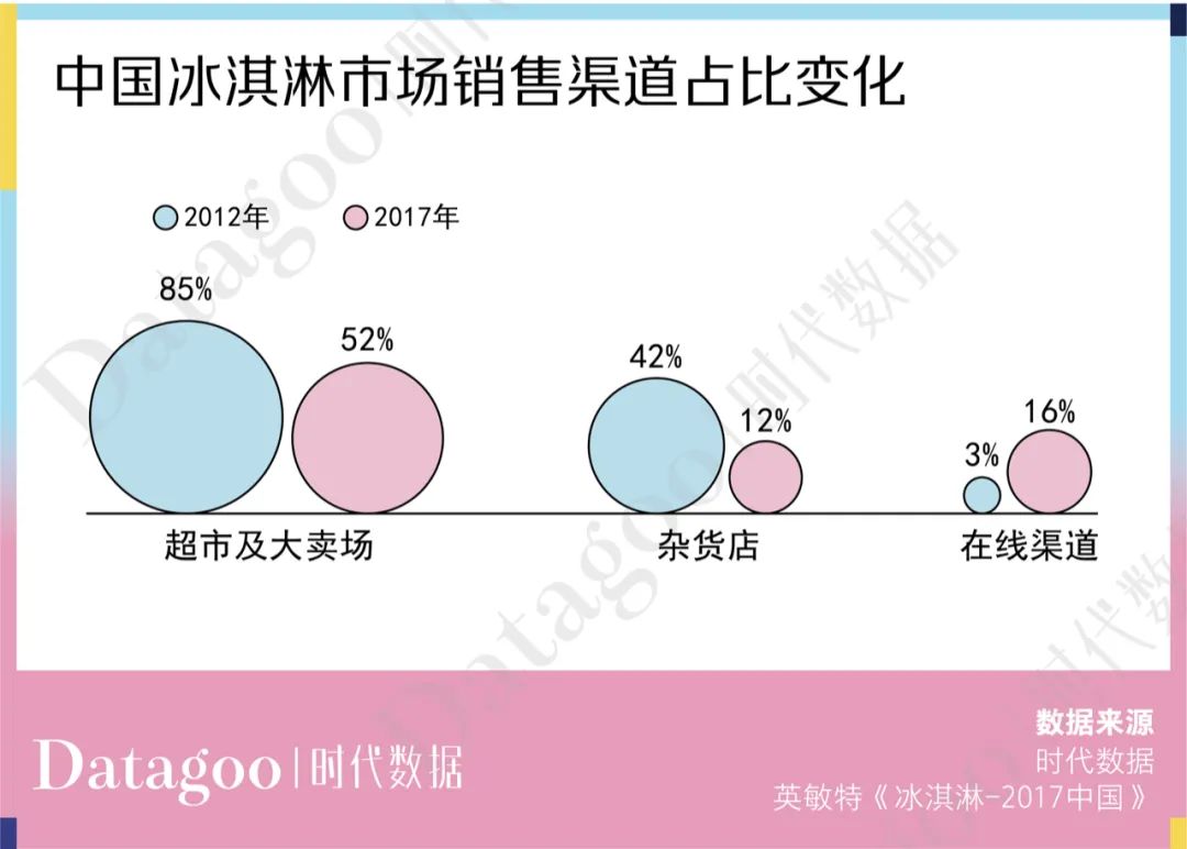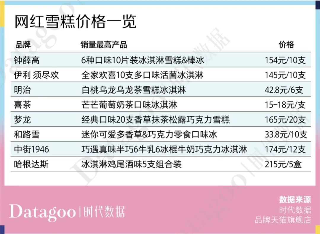 從渠道來看,過往雪糕購買途徑是超市、大賣場和便利店等,並且早已被伊利、蒙牛、和路雪等品牌佔領。在近幾年消費轉型浪潮下,高端冰淇淋正在崛起,尤其是“網紅品牌“強勢佔據了年輕人的購物車。