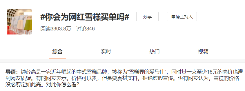 只重營銷終究是在打造皇帝的新衣,經過這幾年網紅消費洗禮的年輕人已經越來越看清本質,才會頻頻把鍾薛高送上熱搜。