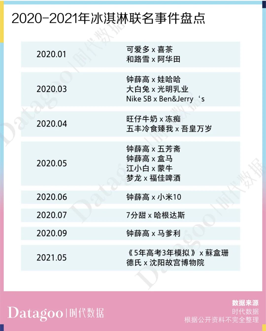 此外,聯名也是網紅雪糕的一大“法寶”。例如鍾薛高與瀘州老窖推出的“斷片”雪糕概念,也讓酒元素加入雪糕成為熱潮。光明聯名大白兔推出了奶糖雪糕,走國潮路線;和路雪與喜茶、奈雪的茶都曾聯名推出奶茶口味的雪糕。