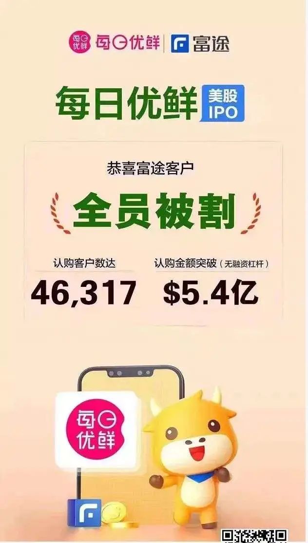 每日優鮮和老虎證券、富途證券搞了個活動,APP內充值100塊可以額外中籤20股。