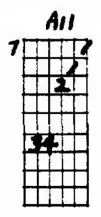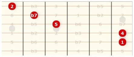 音符排列是A、D、G、C#、E、B,即1-4-b7-3-5-2