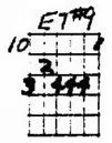 Pat老爺子認為,可以用長線代表需要演奏的琴絃、兩條短線代表不需演奏的琴絃。上圖就代表了一、二絃不彈,彈奏四到六絃。