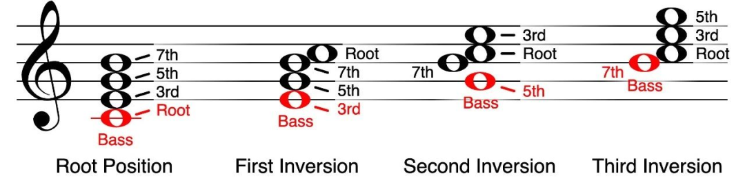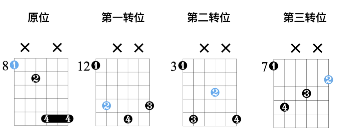 (原位和絃、第一轉位、第二轉位、第三轉位)