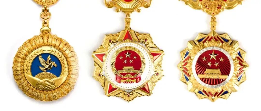 ▲從左至右,友誼勳章、共和國勳章、國家榮譽稱號獎章