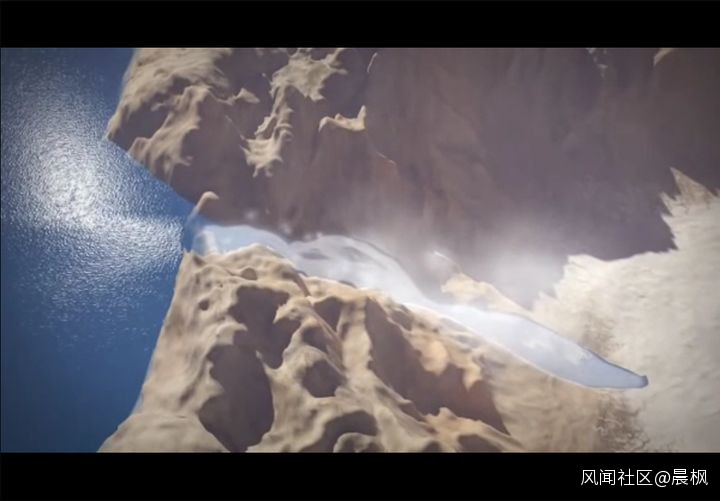 現代用計算機模型推想的500多萬年前直布羅陀“地峽”被大西洋海水重開的情景