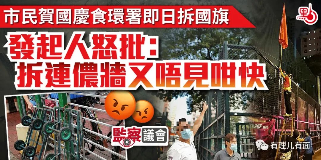 據與會人士透露,當討論到最後的其他事項時,有人突然拿出一疊拍有掛在街上的橫幅和國旗的相片,並大發雷霆,要求食環和路政署聯合採取行動,清除以上的“垃圾”,並高聲指“7.1”、“10.1”是“國殤”,以後逢“7.1”、“10.1”、聖誕和春節,都不準懸掛展示以上物品。