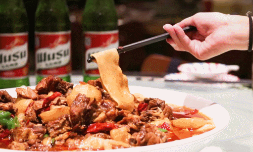 如果説在新疆,大盤雞、辣子雞、椒麻雞是人人稱讚的三大美味,那麼一份皮帶面的加入,可以直接讓它們封神。