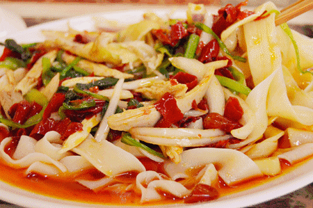 新疆人酷愛吃辣,每道家常菜必不可少的就是辣椒,於是愛吃辣又愛吃麪的新疆人,用辣皮子和肉,再配上心愛的拉條子便做成了一道辣子肉拌麪。