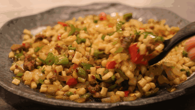 丁丁炒麪,也被稱為**“珍珠炒麪”**,是一道將所有的食材都切成丁,用勺子吃的面。