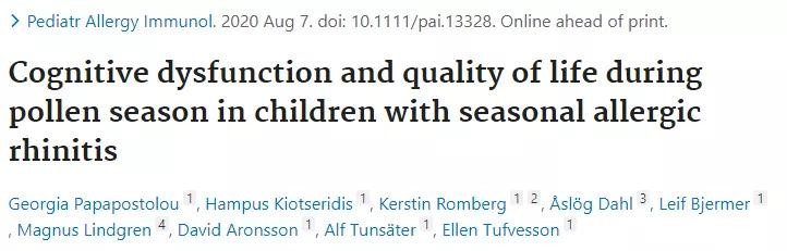 2020年7月發表在《兒科過敏免疫學》(Pediatr Allergy Immunol)的一項研究調查了花粉季節對於過敏兒童認知功能的受損,並嘗試將受損程度與生活質量和與應激和炎症相關的生物標記聯繫起來。