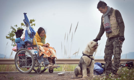2017年,由董卿主持的文化情感類節目《朗讀者》中有一對這樣的夫妻。妻子身患重症,丈夫不離不棄。他們騎着一輛三輪車從柳州出發,在地圖上走出一個“心形之旅”。