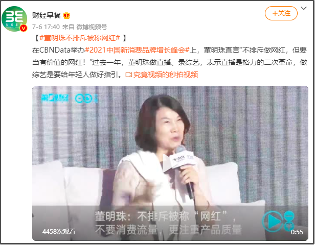 而面對種種質疑,董明珠自己則表示,並不排斥當“網紅”,關鍵是要有自己的價值。