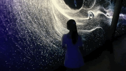 引力展區的地面和牆壁上投射有藍色線條,隨着路過行人靠近,線條會扭曲變形。這是在展示廣義相對論中的“有質量物體附近的時空會發生彎曲”。你可以盡情地在線條上蹦跳,看着腳底的時空不停地扭曲變形,彷彿你就是宇宙中的一顆緻密的中子星。
