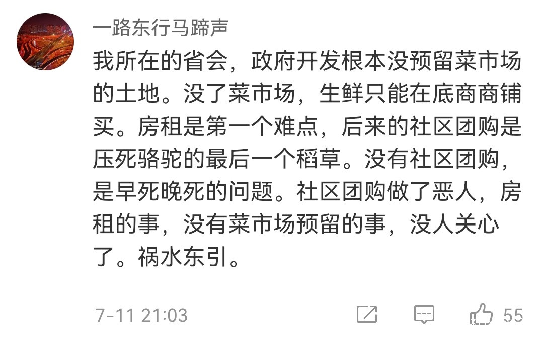 只有菜園子還是一片鬱郁青翠,於是,資本勇敢地站了出來,服務於【無時間買菜】人羣的,意圖消滅樓羣裏僅存的菜攤子。