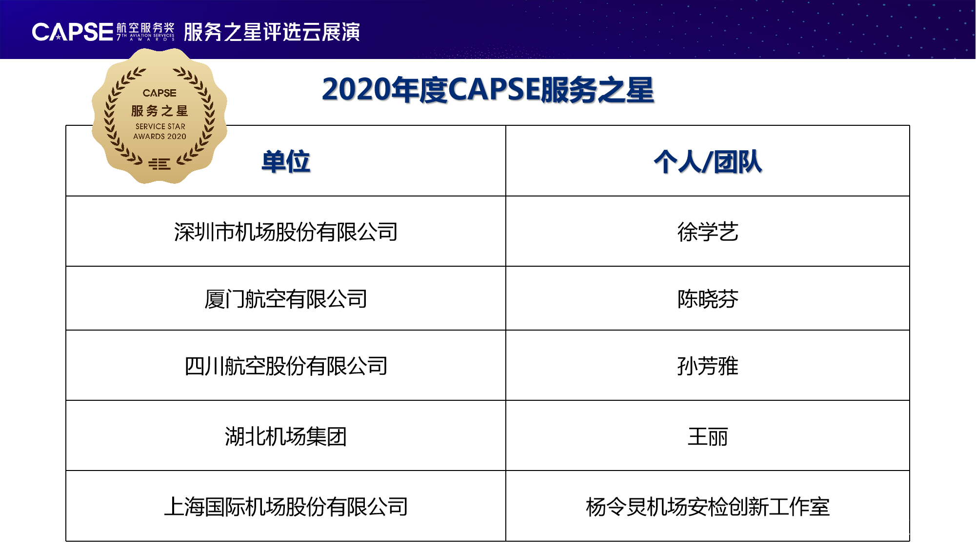 至此,CAPSE創新服務獎正式塵埃落定。2020年度CAPSE創新服務獎&服務之星評選集結優秀的民航力量,共話發展,通過對優秀實體進行表彰,促進行業交流學習,助力行業服務升級。相信在以創新促服務、以交流促提升的推動下,民航服務將通向更高效創新、美好光明的未來。
