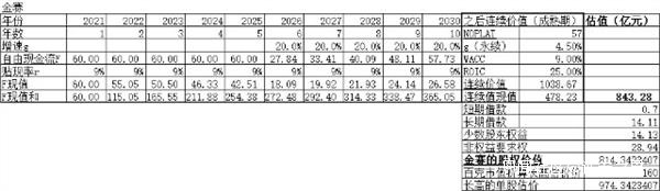 假設長春高新在醫美抗衰老領域做出研發成果,那整體邏輯就從會政策限制的處方藥成長為類消費品。其實生長激素在增高領域也有消費屬性,如果在超適應症範圍開展業務,那市場遠高於已有適應症市場。但這確實有道德和監管風險。考慮到這些,假設品類拓展順利,和恆瑞醫藥的拓展速度近似在20%,那麼假設增量增長在20%。 則考慮到管線成長後的估值如下: