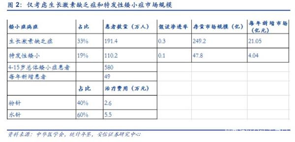 考慮到這些因素,讓我們按照樂觀情況為大家算一個總賬: 首先生長激素是處方藥,要適應症才能用。中國矮小症的發病率大約在3%左右。但矮小症有多種情況,只有2種情況可以用生長激素。