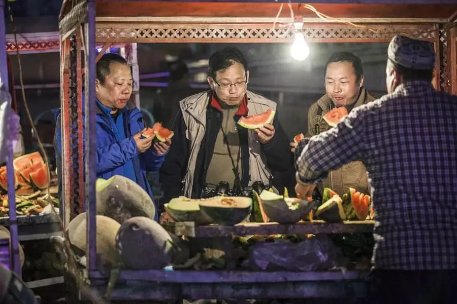 新疆的瓜果,尤其是西瓜等物,價格特別實在,幾角錢一公斤的價格。瓜果市場上的負責拉瓜果的驢子,都對身邊的逐漸壞去的西瓜,完全的不屑一顧了。新疆的西瓜很甜,很便宜。