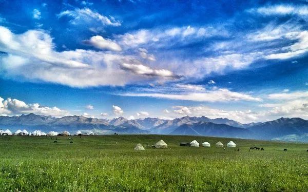 新疆天山附近因為緯度高,降水豐富,導致山脈雪線較低,大概3500米以上就為終年積雪帶。所以在新疆不用去那麼高的海拔呼吸稀薄的空氣和忍受強烈的紫外線,就可以欣賞到如同歐洲阿爾卑斯山一般美麗的雪山草原風光。