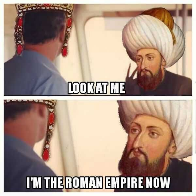 在互聯網世界,玩梗並不需要什麼原則。與“精羅”相對應的,不論中外,都存在着**“精綠羅”**這樣的羣體。“綠羅”這個稱呼,源自奧斯曼帝國征服東羅馬後,在奧斯曼蘇丹穆罕默德二世的頭銜中便添加了一個極為次要的頭銜“Qayser-i Rûm”,即“羅馬皇帝”,而奧斯曼帝國的國教伊斯蘭教崇尚綠色,因此奧斯曼被戲稱為“綠羅馬”。因此,“精綠羅”或者“精蘿”,便成了網絡上喜歡將奧斯曼帝國當作羅馬帝國的繼承者,調侃“精羅”的一羣人。