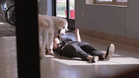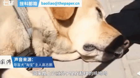 而一直保持温馴的導盲犬,倒在地上委屈地哭了起來。