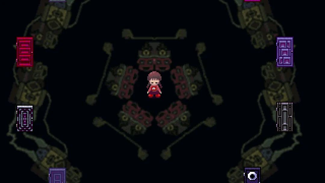 我真不理解你為什麼這麼説……《夢日記》是個多麼好的遊戲啊!它的遊戲系統大道至簡,遊戲內幾乎沒有指引系統、任務系統之類的一般遊戲會有的東西,玩家只能漫無目的地在一個又一個門、一個又一個偶然遇見的傳送點之間四處徘徊。這也構成了遊戲的核心體驗。在沒有看過攻略的情況下,玩家必須面對無限重複的地圖,也不知在何處能遇到有什麼作用的道具和NPC,以及會將付窗子趕進密閉空間的鳥怪人。這些離奇而破碎的要素讓玩家的每一次探索都顯得光怪陸離。