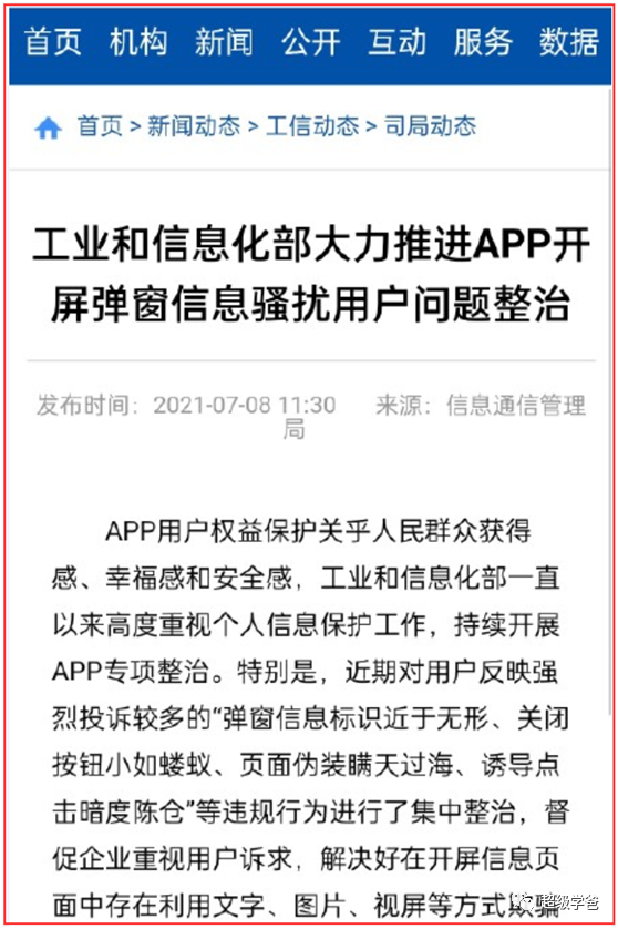 看到這則消息,蛋總首先查看了工信部網站,網站上果然有整治APP彈窗的活動。有的廣告彈窗實在是太可惡了,根本找不到關閉按鈕,稍微一碰就跳轉到了亂七八糟的界面。