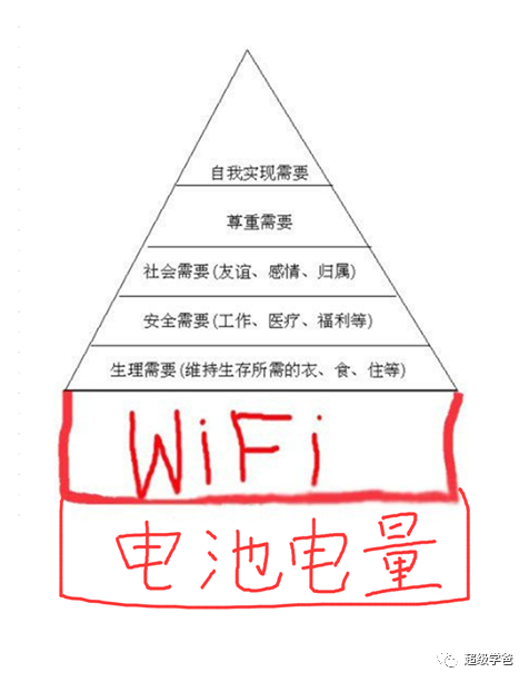 據説馬斯洛的人類需求層次已經調整,wifi和手機電量需要,超越安全需要和生理需要,成為了人類最基礎的需要。