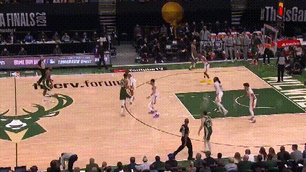 為了應對雄鹿這招,太陽把所有招式都嘗試了。站gap位和換防不行,就嘗試夾擊,賭雄鹿球傳不過去——然而雄鹿能傳過去。