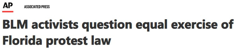 美聯社: 一些“黑人的命也是命”活動人士表示,本週人們在佛羅里達州封鎖繁忙的道路以支持古巴的反政府示威活動時,正在使用雙重標準,儘管新法律加強了對抗議者擾亂行為的處罰,但執法部門採取的行動有限。