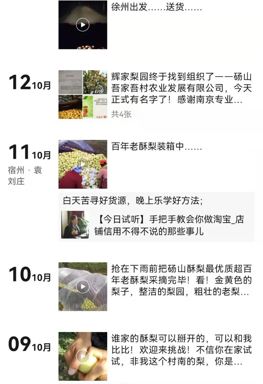 王小輝在朋友圈幫父親賣梨