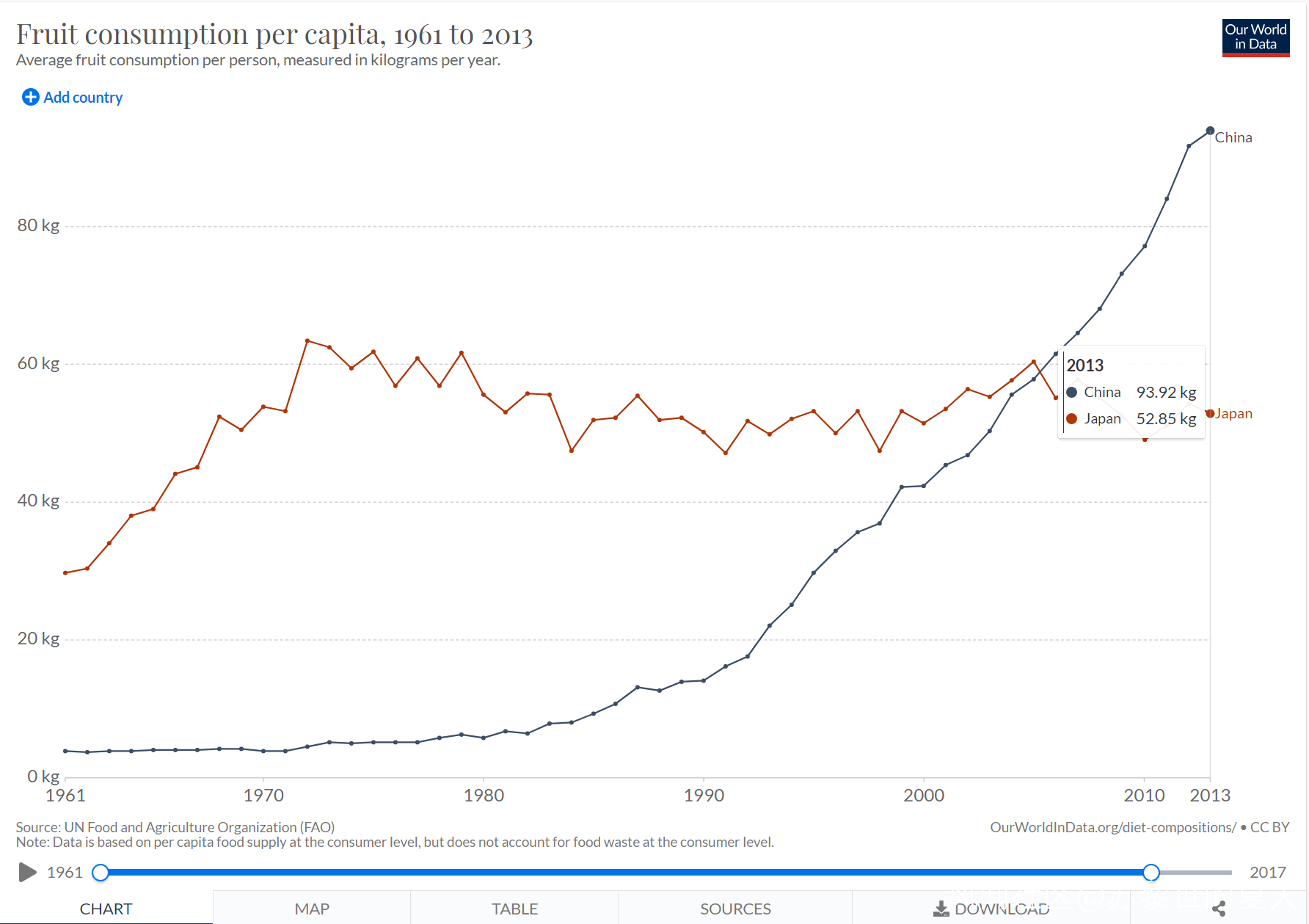 *全球人均水果消費量數據 https://ourworldindata.org/grapher/fruit-consumption-per-capita