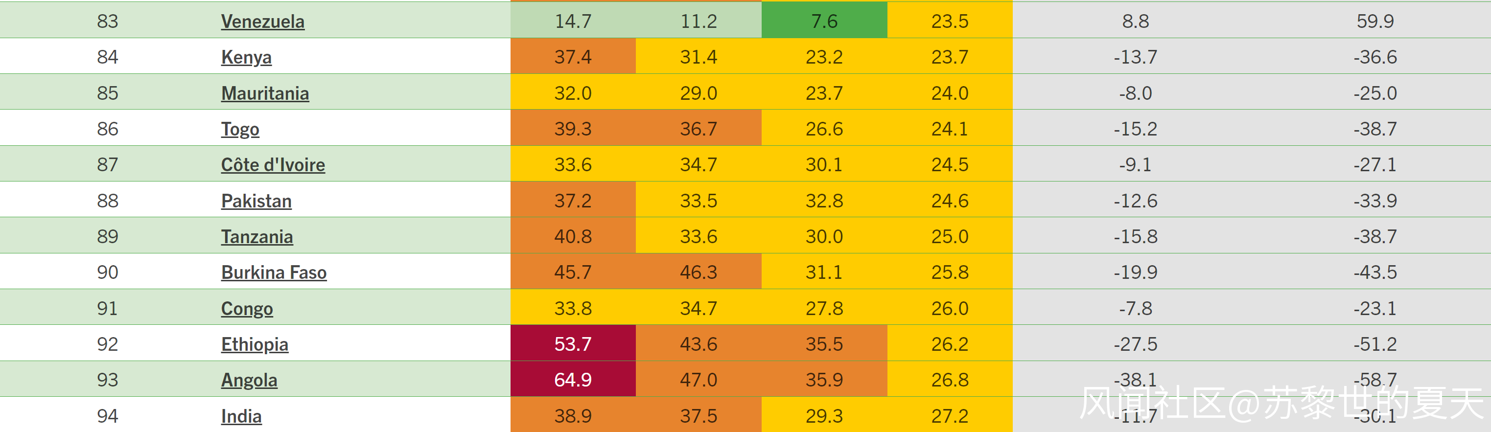 比較有意思的是,儘管歐美媒體在過去幾年把委內瑞拉描述成了人間地獄,説那裏99%的人在捱餓,但連委內瑞拉的飢餓問題都沒有印度這麼嚴重,**如果參考印度過去20年的進步速度,印度即便在樂觀的情況下,也需要在10年以後才能趕上委內瑞拉今天的國民温飽水平。**西方媒體卻很少提及印度人的飢餓問題,提起印度就一定要帶上中國,讓全世界認為中國和印度就是一個檔次的國家,目的何其惡毒陰險!