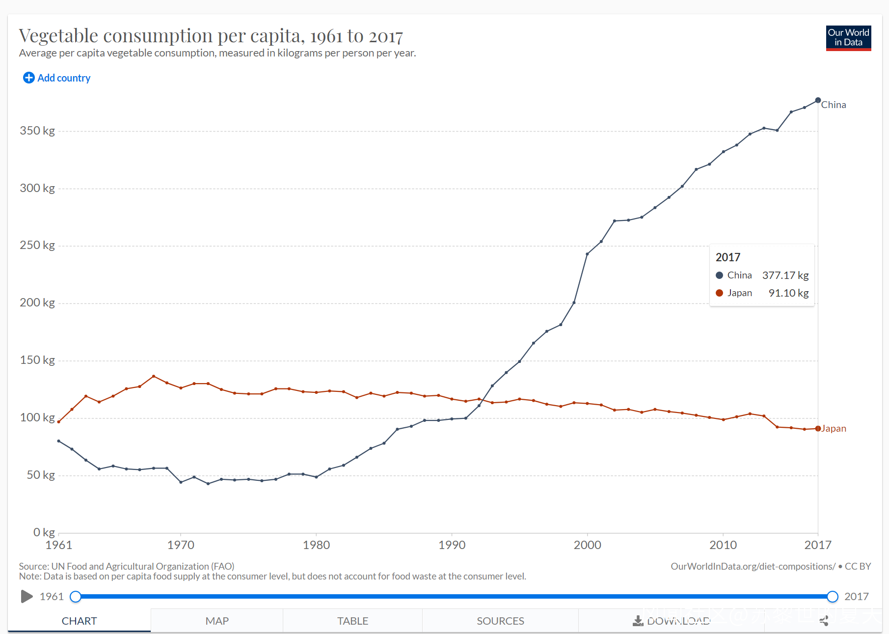 *全球人均蔬菜消費量數據 https://ourworldindata.org/grapher/vegetable-consumption-per-capita