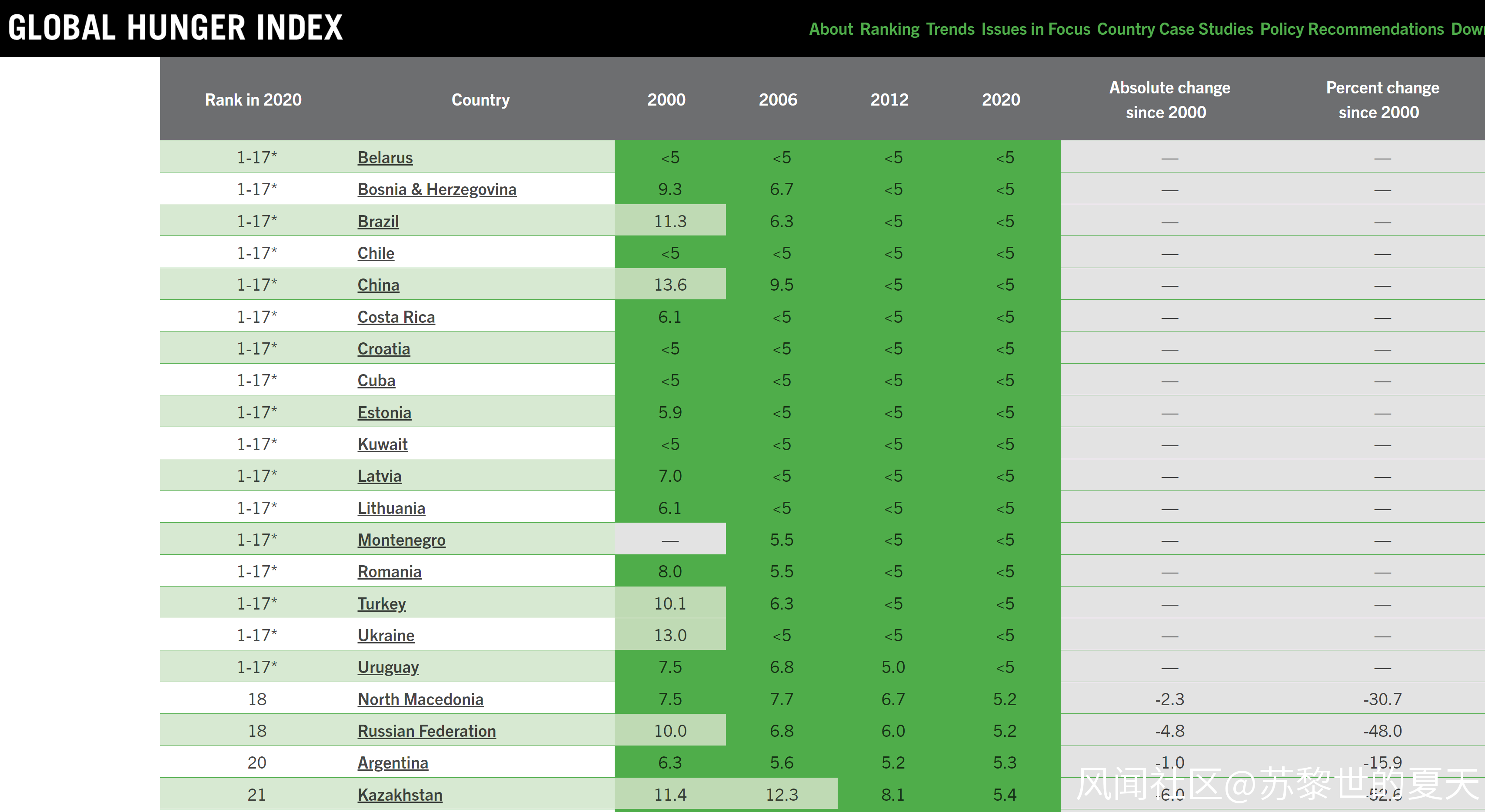 2020年的時候中國人的飢餓指數低於5,實際上從2012年開始中國人的飢餓指數已經低於5了,意思就是基本不存在國民飢餓問題。