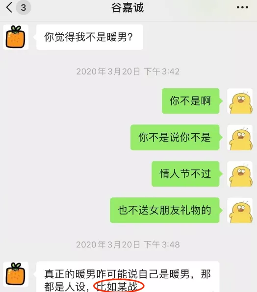 爆出來的聊天記錄裏,還有谷嘉誠內涵隊友肖戰的。