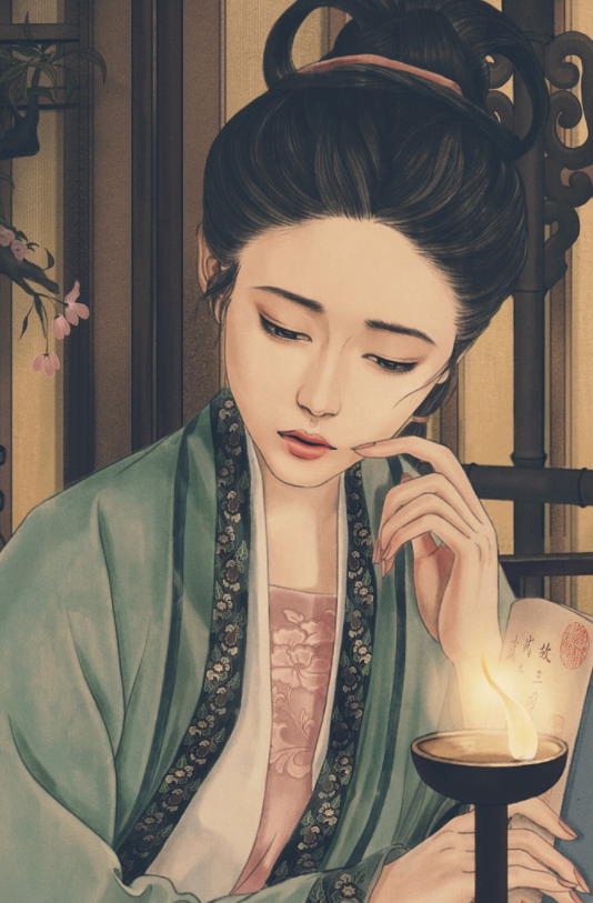 晚上,李清照回到家裏,叫丫鬟準備好筆墨紙硯,開始直播。