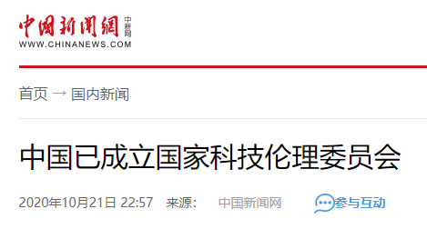 2020年10月,黨的十九屆五中全會提出“健全科技倫理體系”,同時,國家科技倫理委員會正式成立。
