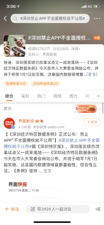 6月29號,深圳第七屆人民代表大會常務委員會第二次會議通過《深圳經濟特區數據條例》,對民眾深惡痛絕的大數據“殺熟”、個人數據隨意收集、強制個性化廣告推薦等問題説“不”,並給予重罰。