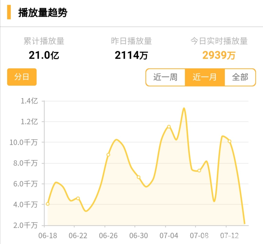 有了話題度卻口碑失勢,讓《千古玦塵》在很長時間出現了一定程度的“低迷”。最大的反映是在累計播放量上。根據骨朵數據統計,《千古玦塵》的播放量在6月25日才再次幾乎與6月19日持平,但要知道20日、24日都有新內容更新,《千古玦塵》“第一世”的播放情況並不算好。